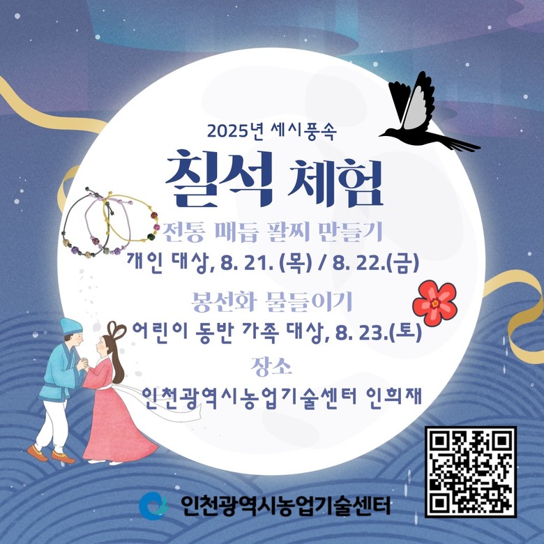 ‘칠석’은 음력 7월 7일로, 견우와 직녀의 전설로 잘 알려진 날로, 예로부터 여인들이 바느질 솜씨를 기원하며 소원을 빌던 날로 전해진다.