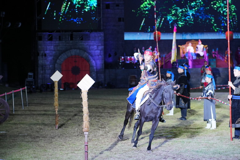 | ▲ 기마 퍼포먼스 등 무예 기술을 관람할 수 있는 수원화성문화제 메인 공연 ‘야조’의 한 장면. |