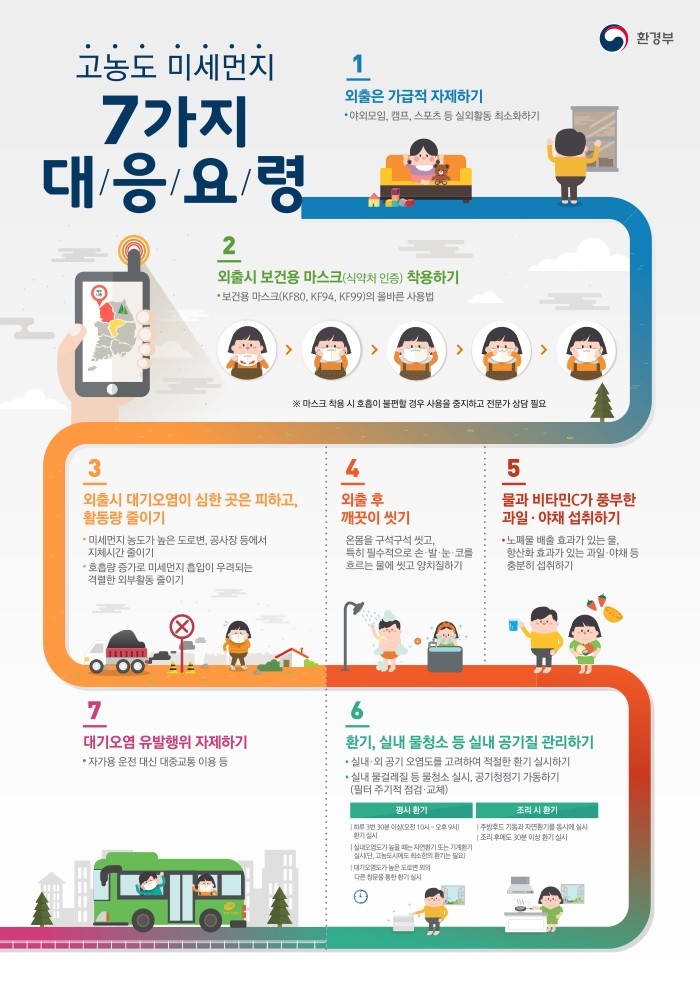 초미세먼지 비상저감조치가 발령되면, 5등급 차량 운행 제한, 공공사업장 가동률 조정, 건설공사장 공사시간 조정, 도로청소 강화 등의 조치가 시행된다.