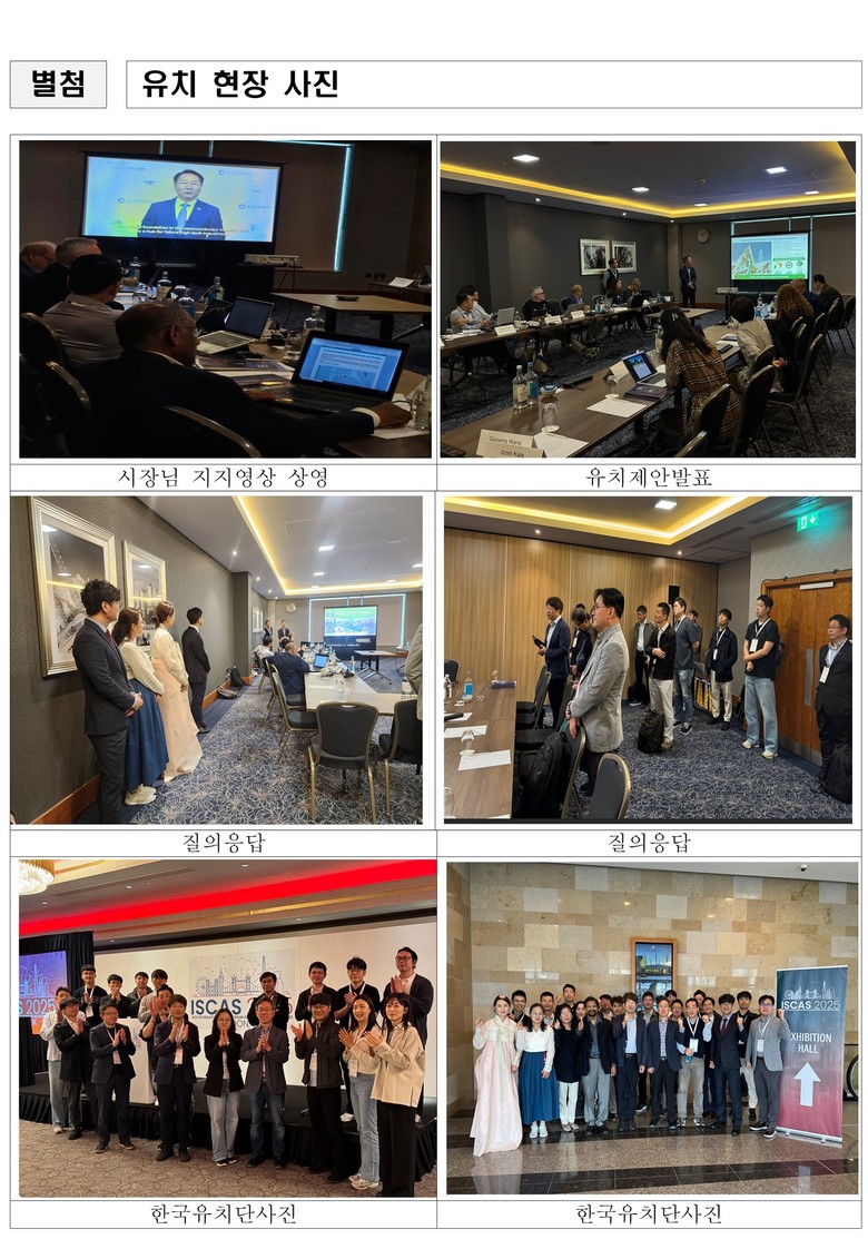 인천시는 ISCAS 2029 유치를 위해 2023년부터 학회와 지속적으로 교류하며 기반을 다져왔다. 특히, 인하대학교 이한호 교수와 협력해 2025년 3월, 공식 지지서한을 담은 1차 유치의향서를 학회에 제출하였고, 이어 ‘ISCAS 한국 유치단’을 구성해 전략적인 유치 활동을 전개해 왔다. 이러한 민관 협력과 체계적인 대응이 경쟁 도시들과의 접전 속에서 성공적인 유치로 이어졌다.