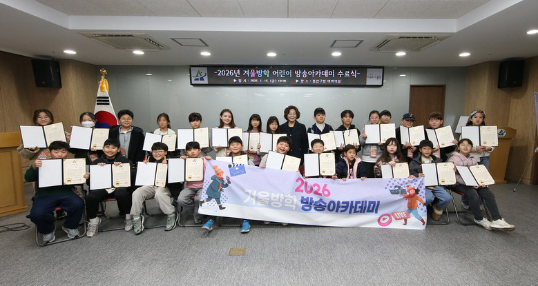 [용산구 세계타임즈=이장성 기자] 서울 용산구(구청장 박희영)가 지난 16일 시사회와 수료식을 끝으로, 지역 초등학생을 대상으로 운영한 ‘2026 겨울방학 방송아카데미’를 성공적으로 마무리했다고 밝혔다.