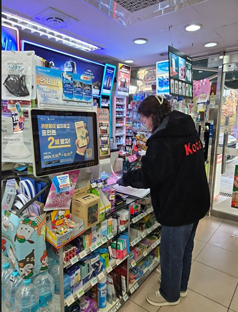 | ▲ 성남시 어린이 기호식품 전담관리원이 학원가 주변 편의점에서 소비기한 경과 식품 등을 진열·판매하는지 여부를 점검하고 있다(자료사진) |
