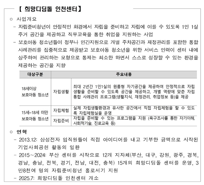 앞으로 협약 기관들은 보호자의 돌봄을 받지 못하는 위기청소년과 자립준비청년을 조기에 발굴해 전문적인 심리상담을 제공하고, 진로 탐색, 주거 공간 지원, 자립 프로그램 등 다양한 맞춤형 서비스를 연계해 건강한 사회 정착을 지원할 계획이다.