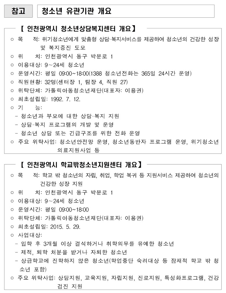 이번 협약은 인천 지역의 위기청소년이 되기 쉬운 보호아동 및 청소년을 조기에 발견하고, 이들의 건강한 성장과 복지 증진을 도모하며, 청소년안전망 구축을 위해 상호 협력하는 것을 목적으로 성사되었다.