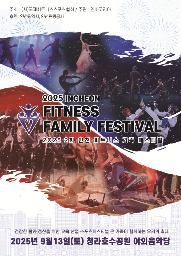 전 세대가 함께하는 건강 축제 - [인천 세계타임즈=심하린 기자] ‘2025 인천 피트니스 패밀리 페스티벌’이 오는 9월 13일 청라호수공원 야외음악당에서 열린다. 이번 행사는 ‘바른 몸, 바른 자세, 바른 마음’이라는 주제로 시민들이 건강하고 조화로운 삶을 실천할 수 있도록 돕는 것을 목표로 한다.