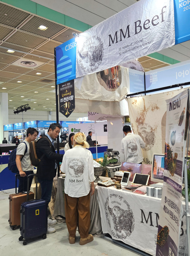 참여기업 ㈜천년식향은 식물성 한우 마블링 스테이크를 중심으로 조리 시연과 기술 소개를 진행했다. 조리 전후 제품을 비교 전시하며 마블링 구현 기술과 발효기술을 함께 선보였고, 소포장 샘플 및 한정판 패키지를 판매해 소비자 반응을 확인했다.