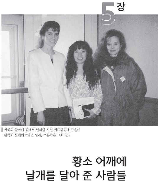 나는 일이 힘들고 고달플 땐 피아노로 내 마음을 달랠 수 있겠다생각했다. 그러나 막상 일을 해 보니 피아노는 그림의 떡에 불과했다. 그집은 써리 할머니 집에 비해 10배도 넘는 저택이었다. 아들둘과 딸 둘을 둔 여섯 식구가 사는 집이었지만, 나는 밥 먹는 시간과 화장실 가는 시간 외엔 허리가 부러지도록 일만 해야 했다. 아침7시부터 오후 5시까지 뭔가를 계속 쓸고 닦았다.