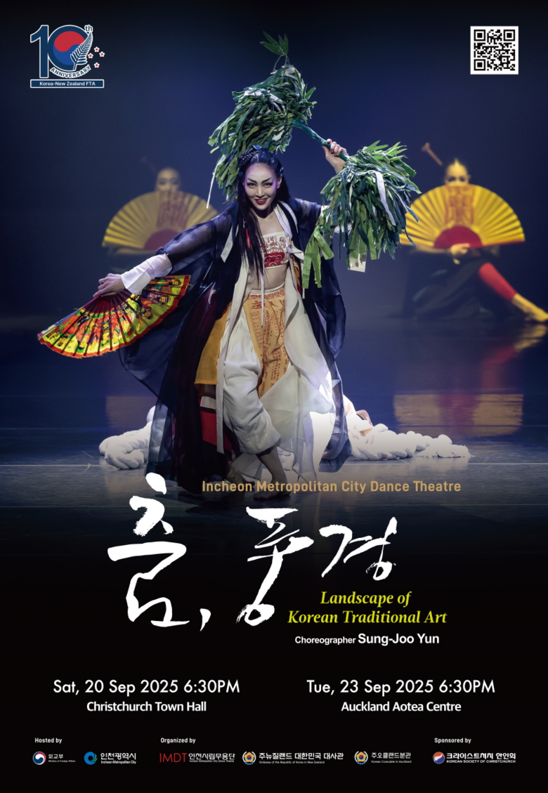 이번 뉴질랜드 공연을 위해 인천시립무용단은 해외용 브랜드 작품인 <춤, 풍경>을 준비했다. 전통무용의 아름다움과 창작 춤의 세련된 감각을 더해 우리 춤의 정경을 선보이는 이 작품은 다년간 국제 외교 행사 및 해외 공연을 수행하며 작품성과 완성도 면에서 찬사를 받아온 작품이기도 하다.