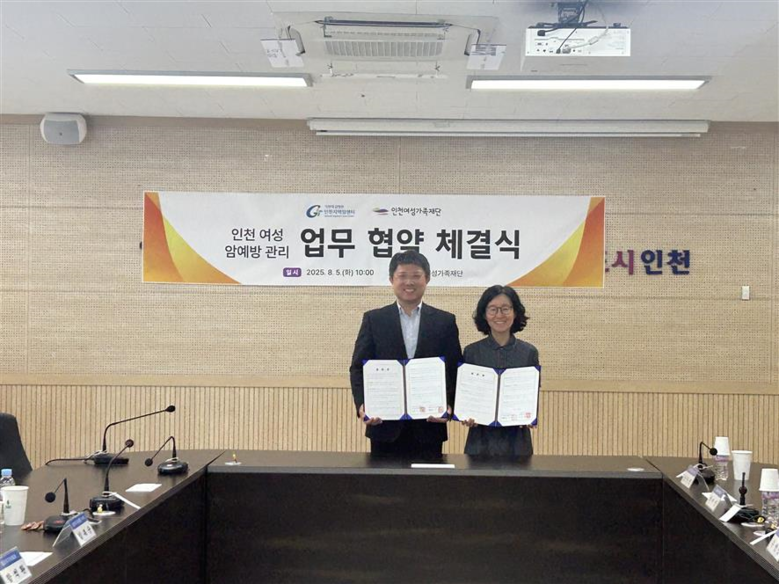 [인천 세계타임즈=심하린 기자] 인천여성가족재단과 가천대 길병원 인천지역암센터는 2025년 8월 5일, 지역사회 여성들의 건강 증진을 위해 여성 암 예방 및 관리를 위한 업무협약을 체결했다.