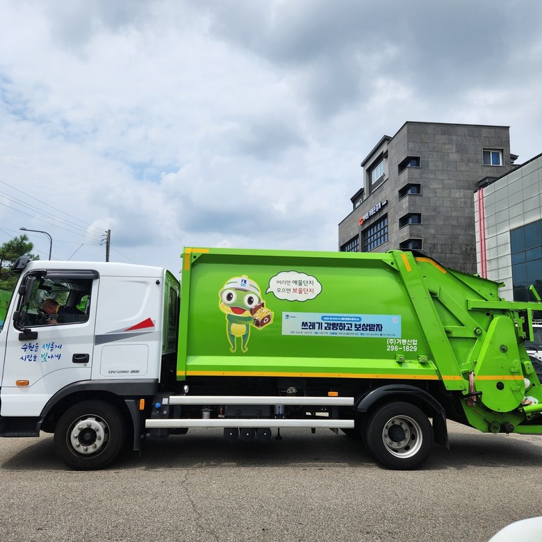 | ▲ 새빛 환경수호자를 홍보하는 스티커를 붙인 수원시 청소차. |