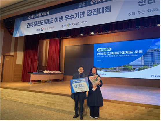시는 지난 11월 27일 진행된 발표 심사에서 '시민 체감형 건축물 관리강화 및 재난예방 체계 구축'이라는 주제 아래, 건축물 점검 사례를 바탕으로 한 체계적인 건축물 관리제도 운영 현황을 발표해 좋은 평가를 받았다.