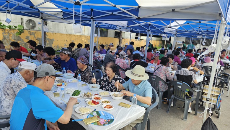 오정동 희망나눔센터 앞마당에서 진행된 이날 행사는 저소득 가구 등 어르신 300분을 초청한 가운데 따뜻한 삼계탕과 정성 어린 마음을 함께 나눴다.