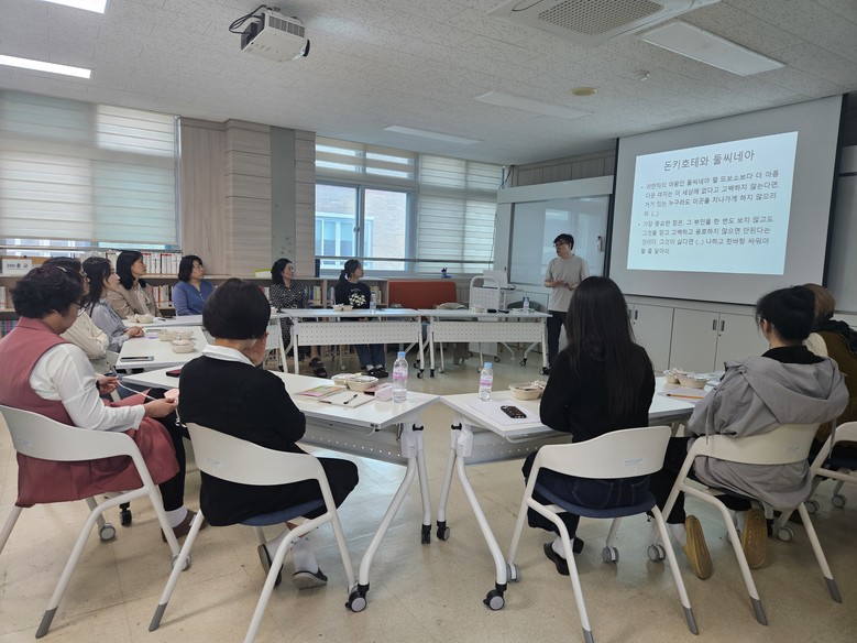 [충북 세계타임즈=이현진 기자] 영동고등학교(교장 이철우)는 18일(금), 충북대학교 인문학연구소에서 제공하는 2024년도 지역을 찾아가는 인문학 강좌를 학교도서관에서 교원을 대상으로 진행되었다.