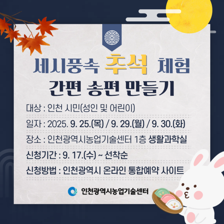 참가비는 무료이며, 프로그램은 추석의 유래와 의미를 배우는 교육 과정과 송편 만들기 체험으로 구성된다. 특히 간편하게 만들 수 있는 송편 체험을 통해 가족이 함께 참여하며 명절 분위기를 느낄 수 있도록 했다.