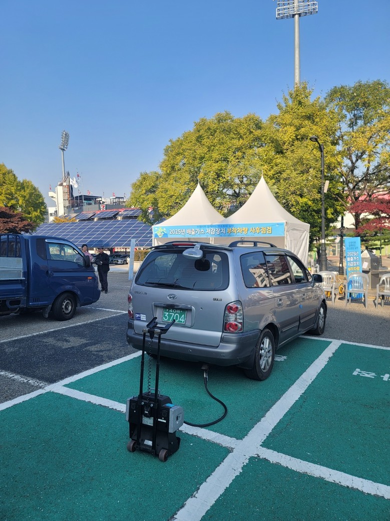 매연농도를 측정해 저감 장치의 성능을 확인하고, 자기진단장치(OBD) 정상 가동 여부와 배기 온도·압력 기록 상태 등을 점검했다. 또 부착 차량의 의무 사항을 안내하고 필터 클리닝 서비스를 제공했다.