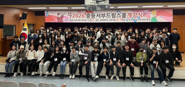 [대구 세계타임즈=한윤석 기자] 대구서부교육지원청(교육장 김규은)이 지난 3월 28일(토) 경운중학교에서 ‘2026. 중등 서부드림스쿨’ 개강식을 개최하고 거점학교 6교*를 중심으로 4월 4일(토)부터 본격적인 운영을 시작한다고 밝혔다.