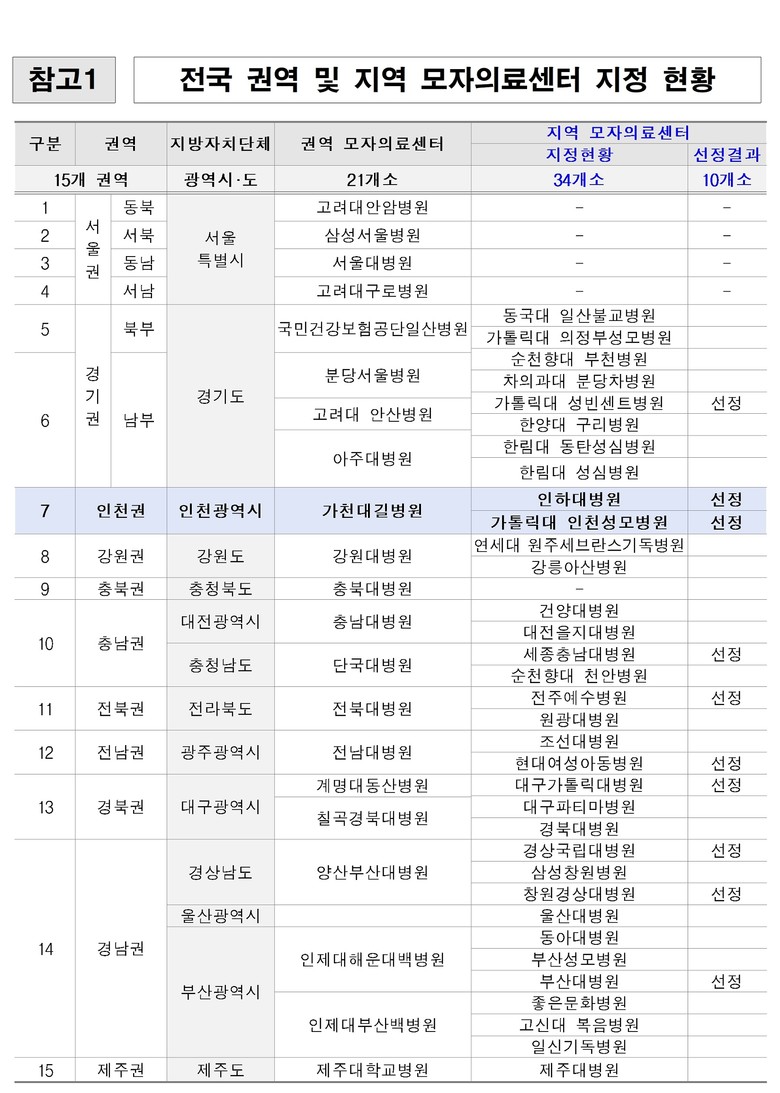 이번 공모에서는 전국 34개 지역모자의료센터 중 10개소가 선정됐으며 그 가운데 인천시에서 2개소가 포함됐다.
