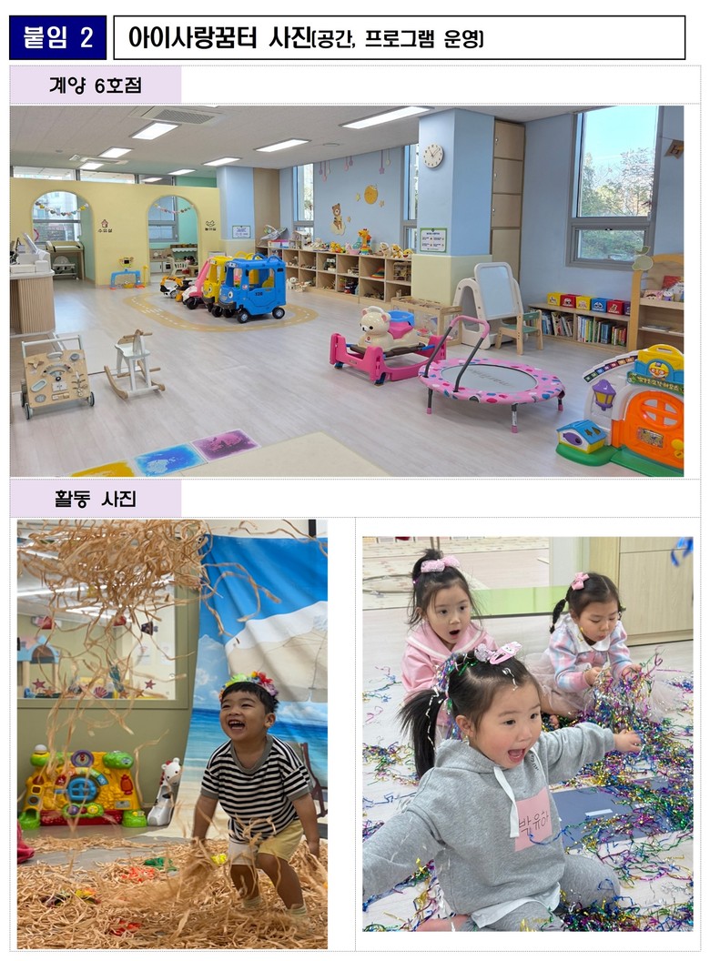 - 이용자 만족도 94.5%, 재이용 의향 99.4% - [인천 세계타임즈=심하린 기자] 인천광역시(시장 유정복)는 전국 최초로 조성한 영유아 전용 공동육아·돌봄 공간인 ‘아이사랑꿈터(이하 꿈터)’의 올해 이용자가 34만 명을 넘었다고 밝혔다.