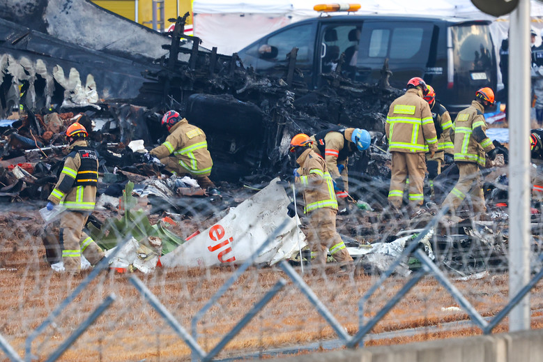 30일 오전 전남 무안군 무안국제공항에서 발생한 제주항공 여객기 충돌 폭발 사고 현장에서 소방대원 등이 수색작업을 펼치고 있다. 2024.12.30