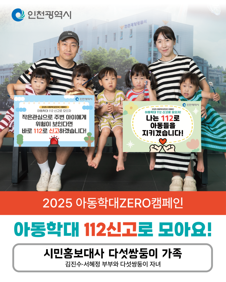 이번 캠페인에는 시민홍보대사로 김진수 대위·서혜정 소령 부부와 다섯쌍둥이 가족이 함께 참여해, 따뜻한 가족의 이야기를 통해 아동학대 예방의 중요성을 시민에게 전달할 예정이다.