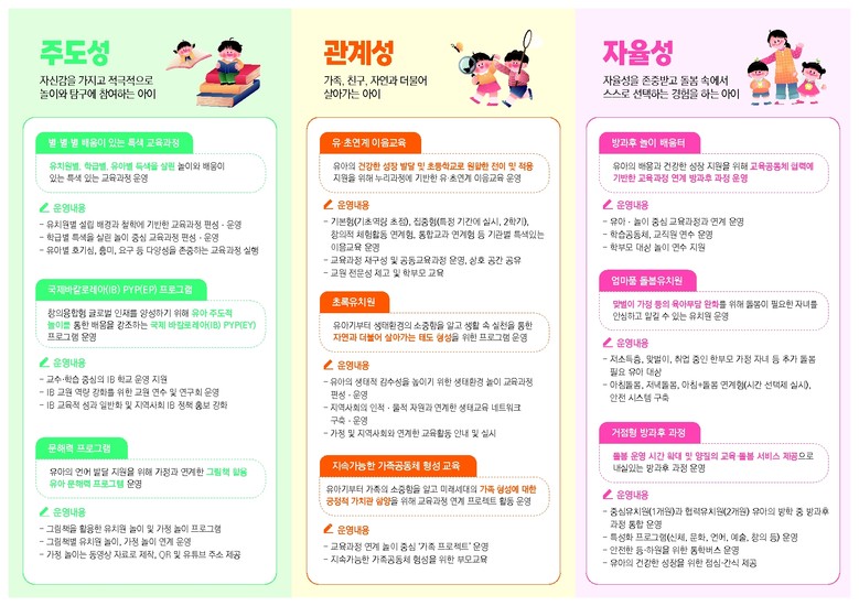 홍보 부스에서는 북구 거주 영유아 가족을 대상으로 ▲지속가능한 가족공동체 형성 교육, ▲유아 문해력 교육, ▲영유아학교 시범 운영, ▲영유아 숲놀이 운영 등 대구시교육청의 유아교육과 유보통합 정책을 안내한다.