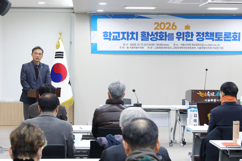 [서울 세계타임즈=이장성 기자] 서울시의회 기획경제위원회 이상훈 의원(더불어민주당, 강북2)은 지난 17일(수) 서울시의회 제2대회의실에서 「2026 학교자치 활성화를 위한 정책토론회」를 개최했다.