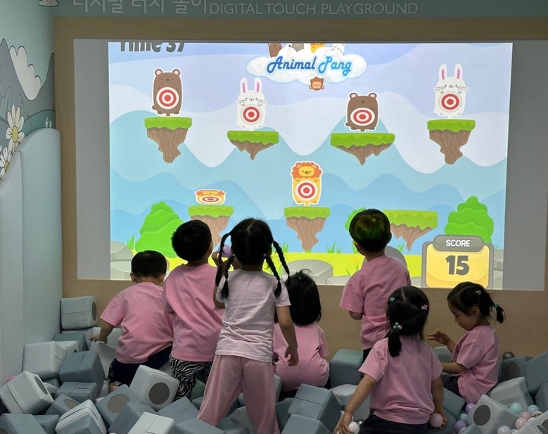 | ▲ 마포누구나운동센터에서 디지털 터치 놀이 중인 어린이들 |