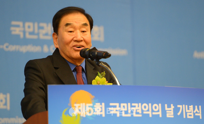 이재오 전 국민권익위원장이 27일 오후 정부세종컨벤션센터에서 열린 제5회 국민권익의 날 기념식에서 축사를 하고 있다. 2017.02.27.