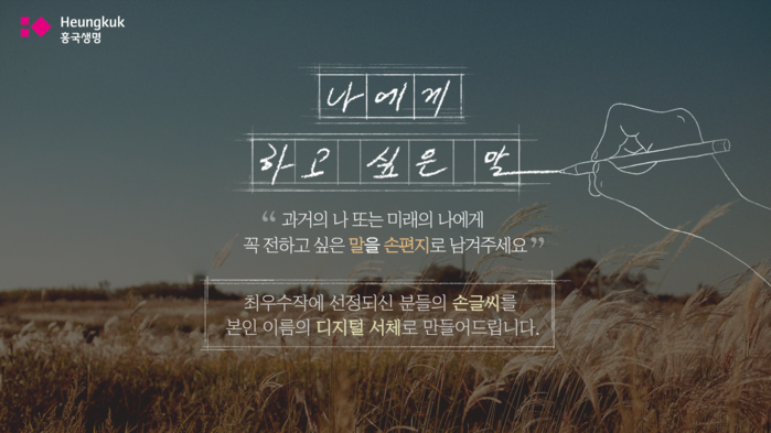 흥국생명 관계자는 “이번 공모전을 통해 디지털화로 사라져가고 있는 아름답고 개성 있는 손글씨의 소중함을 되새길 수 있길 바란다”며 “앞으로도 고객이 공감할 수 있는 다양한 이벤트를 통해 신뢰와 믿음을 더 굳건히 하겠다”고 말했다.