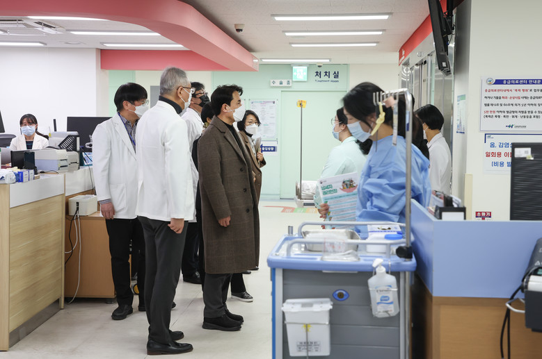 남우동 병원장과 함께 최근 독감 유행으로 인해 소아, 노약자 응급환자가 증가하는 상황을 반영해 응급의료체계 전반을 점검했으며, 설 연휴기간 응급의료센터 운영 계획 등을 확인하였다.