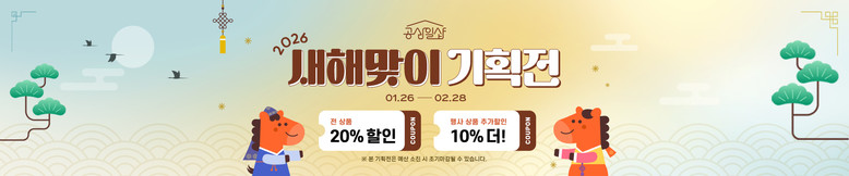 - 새해 맞이 전체 제품 20% 할인 제공, 2월 28일까지 진행