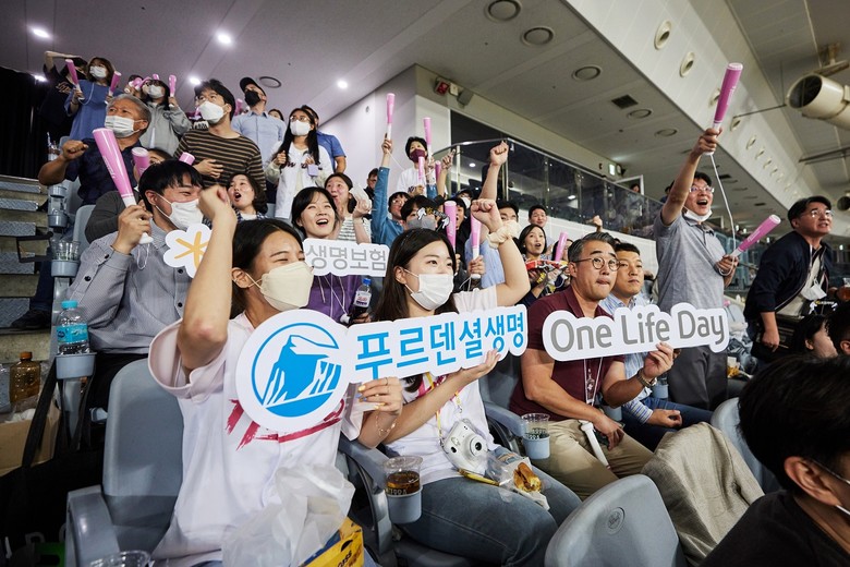 이번 행사는 지난 20일(화) 서울 고척 스카이돔에서 열린 키움 히어로즈와 삼성 라이온즈 프로야구경기에서 진행됐다. ‘원라이프데이’는 키움히어로즈를 후원하고 있는 KB생명보험이 임직원 대상으로 매년 야구 관람 및 이벤트를 진행하는 파트너데이로 올해에는 푸르덴셜생명보험 임직원들과 함께 진행했다.