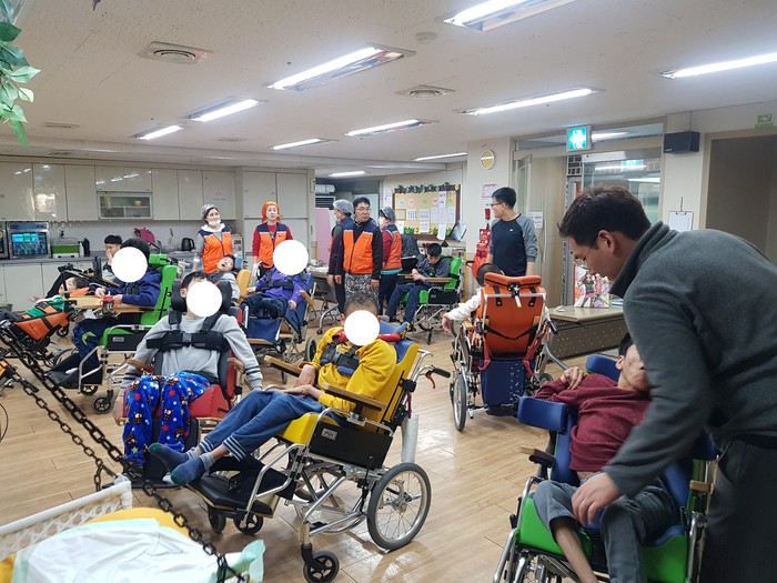 이날 통닭봉사에는 신상일 단장을 비롯해서 자원봉사자 15명이 3층,4층에서 중증장애인들에게 통닭을 직접 먹여주면서 경자년 새해 첫날에 뜻 깊은 시간을 보냈다.