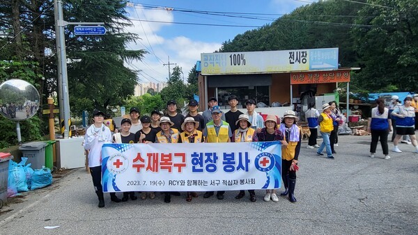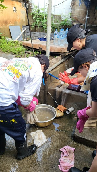 이들은 19일 대전시 서구 정림동 및 가수원동 수해 가구 현장으로 달려가 봉사활동에 참여했다. 대전시 서구자원봉사회 주관으로 펼쳐진 이날 봉사활동은 대한적십자사 청소년적십자(RCY) 팀과 함께 했다.