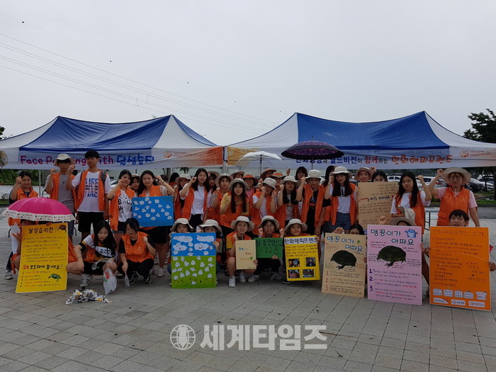 낙동강과 금호강의 합류지점에 형성된 달성습지는 멸종위기 야생동물인 맹꽁이와 천연기념물 흑두루미 등을 볼 수 있는 생태계의 보고로 꼽힌다. 그러나 인근에 공단, 아파트 등이 들어서면서 환경오염으로 인해 야생동물 개체수가 급감하고 있는 추세이다. 이에 봉사단원들은 직접 만든 홍보물을 전달하고 페이스페인팅 이벤트를 실시하며 지역주민들에게 환경보호 참여와 관심을 유도했다.