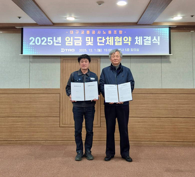 [대구 세계타임즈=한윤석 기자] 대구교통공사는 12월 1일, 양대 노동조합 중 하나인 민주노총 산하의 대구교통공사노동조합과 2025년 임금 및 단체협약에 합의했다.