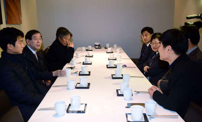박원순 서울시장이 16일 오전 서울 중구 달개비에서 '촛불공동경선, 촛불공동정부'에 관한 시민사회 대표자들과 조찬 간담회를 갖고 있다. 2017.01.16.