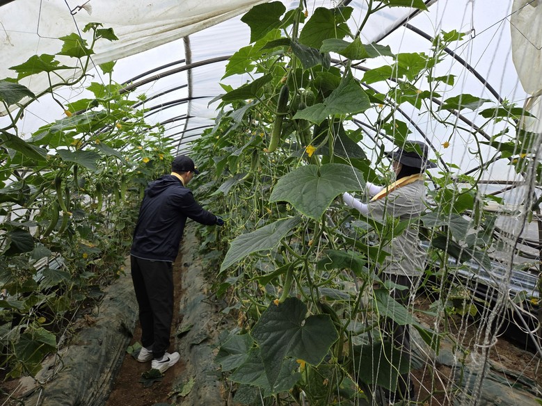 이날 안전정책과장을 비롯한 16여 명의 직원들이 춘천시 사농동에 위치한 오이 농가를 방문해 오이 순따기와 주변 환경정화 활동 등 다양한 작업을 도왔다.