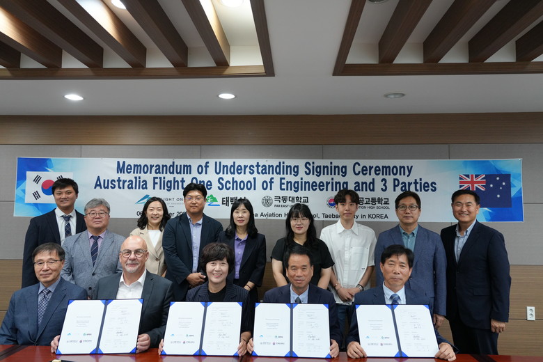 [강원도 세계타임즈=김민석 기자] 강원특별자치도형 마이스터고교로 지정된 한국항공고등학교(교장 문명호)가 6일(금) 태백시청, 호주 항공정비대학(Flight One School of Engineering, 호주 브리즈번 소재), 극동대학교와 함께 항공 정비 교육 활성화를 위한 4자 협약을 체결했다.
