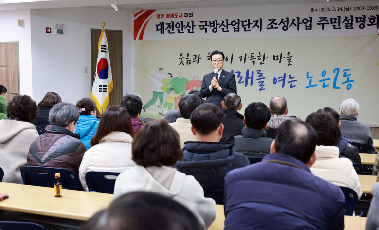 [대전 세계타임즈=이채봉 기자] 안산첨단국방산업단지 조성사업 추진에 속도가 붙을 것으로 기대된다. 대전시의회 조원휘 의장은 14일 대전 노은2동주민센터에서 열린 ‘안산첨단국방산업단지 사업 추진 주민설명회’에 참석해 조성사업 추진 상황을 청취하고 향후 계획에 대해 논의했다. 이날 설명회는 지역주민 100여 명과 대전시 관계 공무원 등이 참석한 가운데 주민들의 궁금증을 해소하는 자리로 진행됐다.