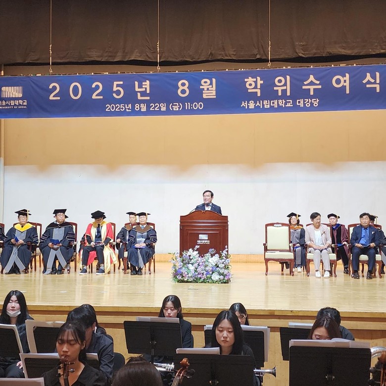 [서울 세계타임즈=이장성 기자] 서울특별시의회 기획경제위원회 임춘대 위원장(국민의힘, 송파3)과 이민옥 부위원장(더불어민주당, 성동3)은 2025년 8월 22일(금), 서울시립대학교 대강당에서 열린 2025학년도 후반기 학위수여식에 참석해 축사를 전하고 졸업생들의 새로운 출발을 응원했다.