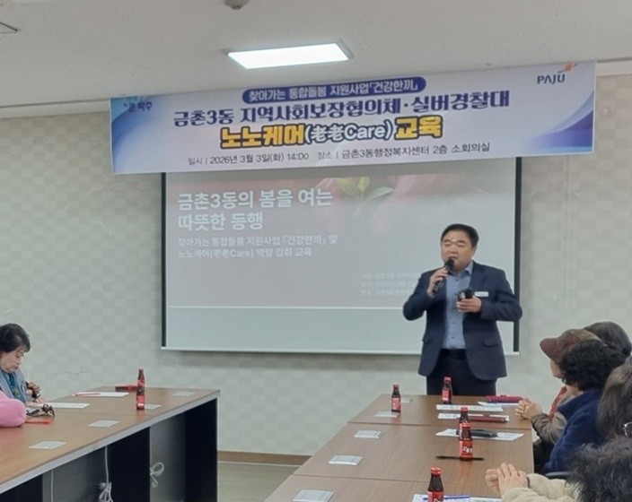 [파주시 세계타임즈=송민수 기자] 파주시 금촌3동은 지난 3일, 금촌3동 행정복지센터 2층 회의실에서 ‘건강한끼 노노케어’ 참여자 20명을 대상으로 올해 첫 번째 역량 강화 교육을 실시했다.