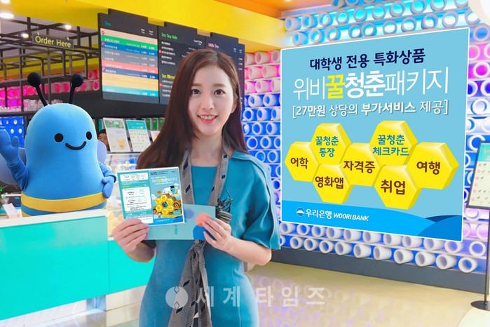 위비 꿀청춘 패키지’는 입출식통장인 ‘위비 꿀청춘 통장’과 체크카드인 ‘위비 꿀청춘 체크카드’로 구성되어 있으며, 가입대상은 만 18세 이상 만 30세 이하 개인이다.