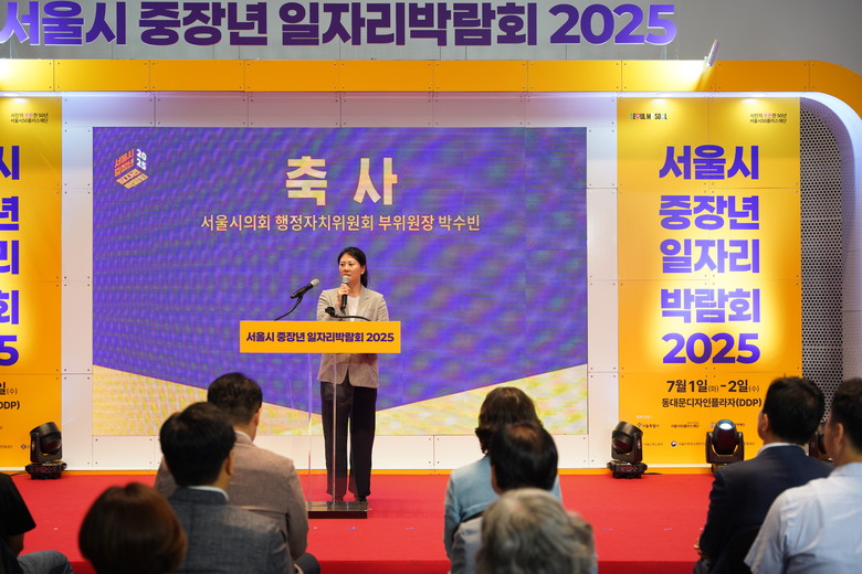 [서울 세계타임즈=이장성 기자] 서울시의회 박수빈 행정자치위원회 부위원장(더불어민주당, 강북4)이 7월 1일(화) 동대문디자인플라자(DDP)에서 열린 「서울시 중장년 일자리박람회 2025」 개막식에 참석해 축사를 전하며, 중장년층이 다시 일어설 수 있도록 제도적 기반을 마련하는 데 시의회도 적극 나서겠다고 밝혔다.
