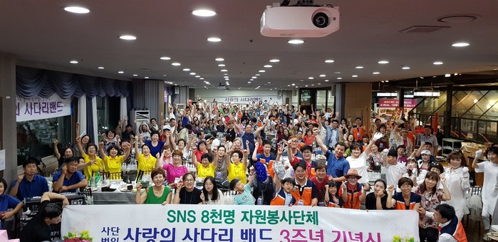 [대전=세계타임즈 이장성 기자] 대전시 소외계층을 위해서 다양한 봉사활동을 실천하고 있는 대전시 SNS 8천명 봉사단체 사단법인 사랑의 사다리 밴드(리더 이정제)는 지난 8일, 크리스탈웨딩홀(대표 구수현)에서 400명의 자원봉사자들이 참석한 가운데 3주년 기념행사를 성황리에 마쳤다.