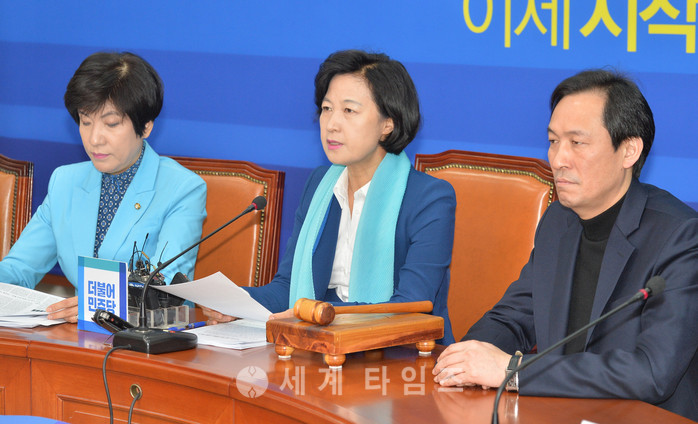 [세계타임즈 심귀영 기자]추미애 더불어민주당 대표는 31일 박근혜 전 대통령이 구속된 데 대해 "대한민국의 법치와 정의가 바로 세워지는 역사적 계기가 될 것"이라고 강조했다.