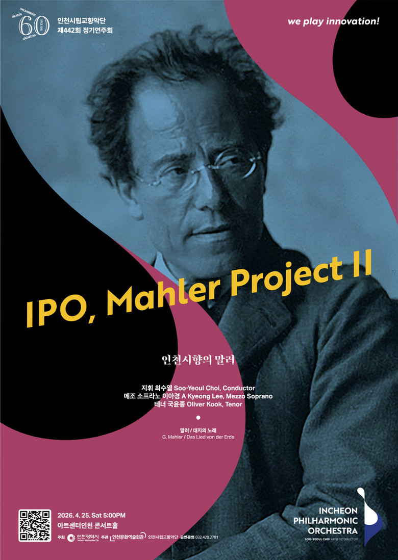인천시립교향악단 제442회 정기연주회 <인천시향의 말러> IPO Mahler Project Ⅱ는 전석 1만원으로, 인천문화예술회관, 아트센터인천 누리집 및 엔티켓, NOL 티켓에서 예약 가능하다. (문의: 인천시립교향악단 032-420-2781)