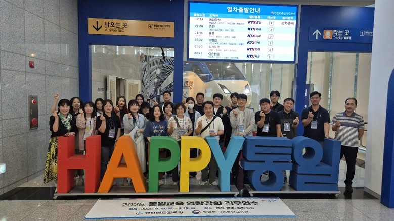 [경남 세계타임즈=최성룡 기자] 경상남도교육청(교육감 박종훈)은 18일(목)부터 19일(금)까지 1박 2일간 ‘2025 통일교육 업무 담당자 역량 강화 연수’를 진행했다. 이번 연수에는 통일교육 현장지원단과 체험 중심 통일학교 업무 담당 교원 등 30여 명이 참여했다.