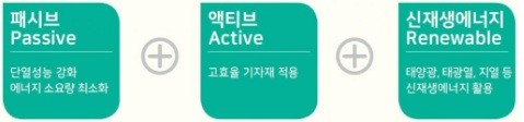 **제로에너지건축물(Zero Energy Building) : 녹색건축물의 한 종류로, 건축물에 필요한 에너지 부하를 최소화하고 신에너지 및 재생에너지를 활용하여 에너지 소요량을 최소화하는 건축물.(녹색건축법 제2조)
