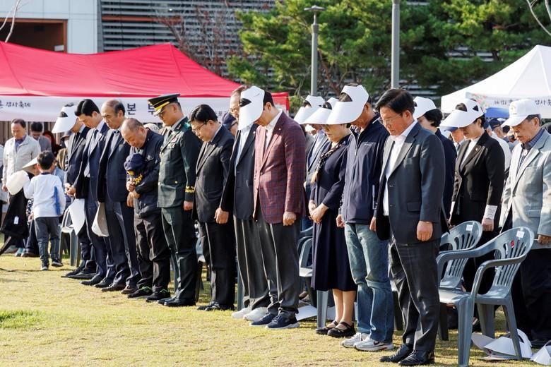 | ▲ 지난해 처음 열린 마포구 호국보훈 감사축제에서 묵념하는 박강수 구청장(오른쪽) |